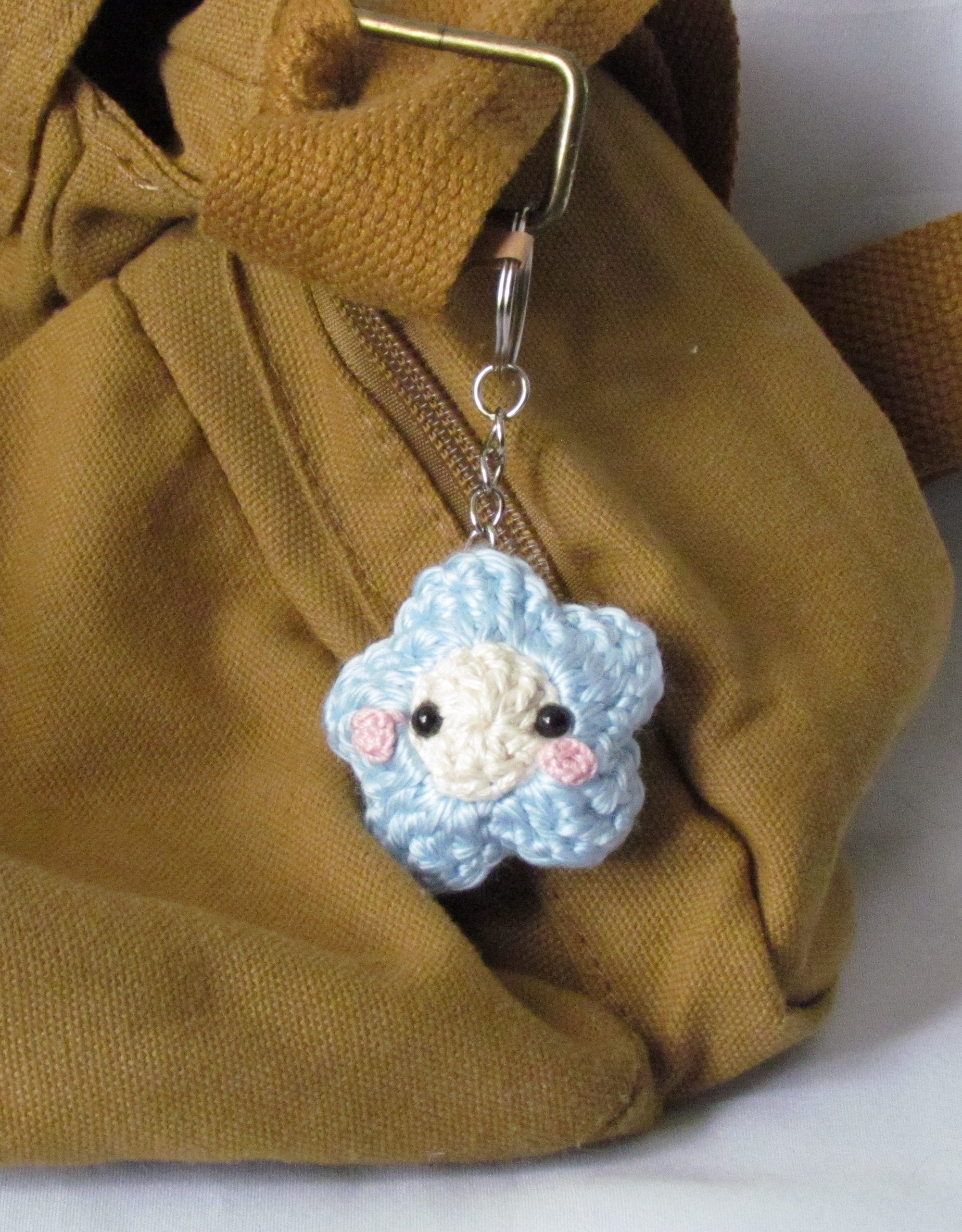 Brighten your keys with this adorable blue star keychain. This cute accessory features with rosy pink cheeks.